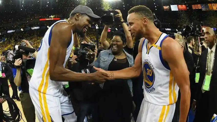 “一对一斗牛当然选杜兰特,杜兰特那大长胳膊大长腿,乔丹来了都费劲;但你要说5v5带队,无脑选库里,库里对球队的正向影响力大于杜兰特。”