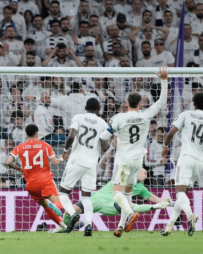 The Red in a sea of White. Luis Diaz strikes first at the Bernabeu 💣 // 📸#欧冠联赛#