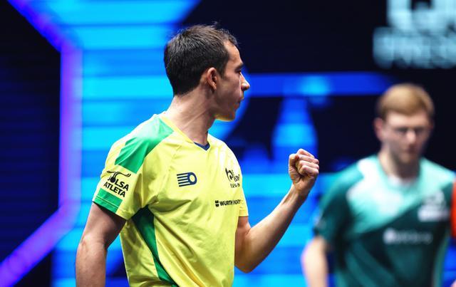 2025年无疑是雨果职业生涯的巅峰之年,这位来自足球王国的乒乓球手书写了一段传奇:4月的澳门世界杯,他连续淘汰日本张本智和、中国王楚钦等顶尖选手,在决赛中4-1战胜世界第一林诗栋,成为首位夺得乒乓球世界三大赛冠军的南美运动员